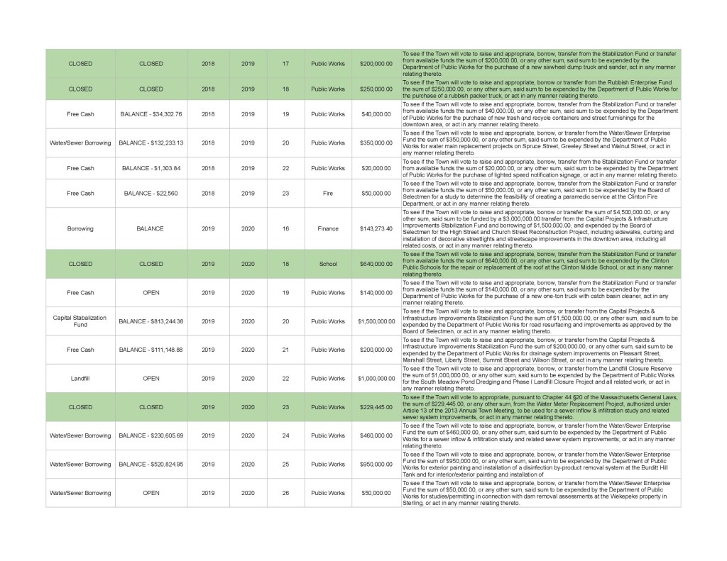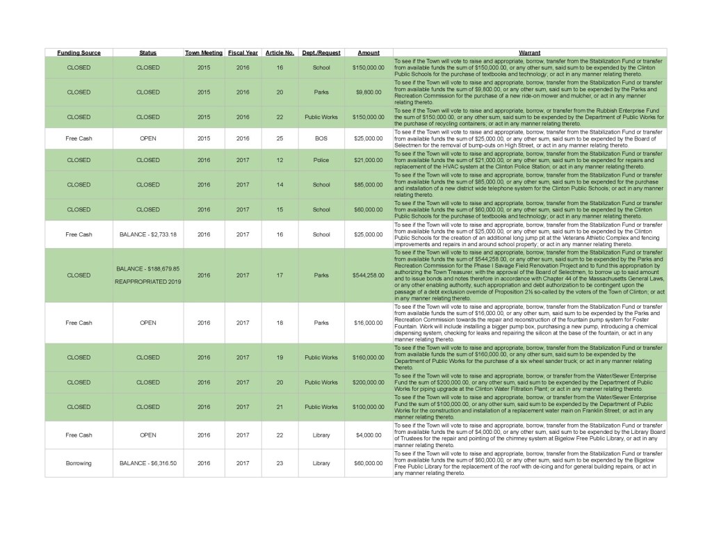 In 2021, I completed a second audit and found that a significant number of warrant articles had been closed and rectified after a process was established and implemented. Furthermore, this allowed for any left over funding to be reallocated to other projects within the department. For example, there was approximately $11K remaining from a previous project at the fire station that was reallocated to a project involving window replacements.
