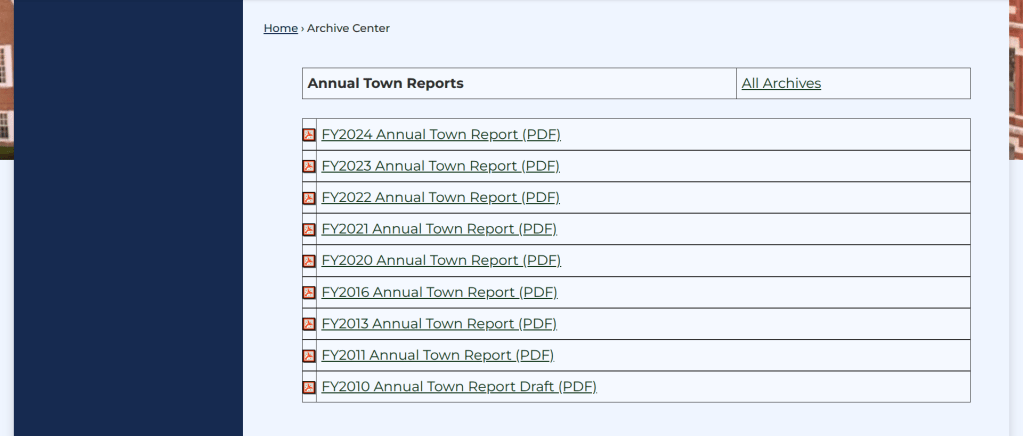 Prior to my serving on the Select Board, the Annual Town Report had been published just four times between FY2010 and FY2019. Since being elected to the Select Board in 2020, the Annual Town Report has been published every year.